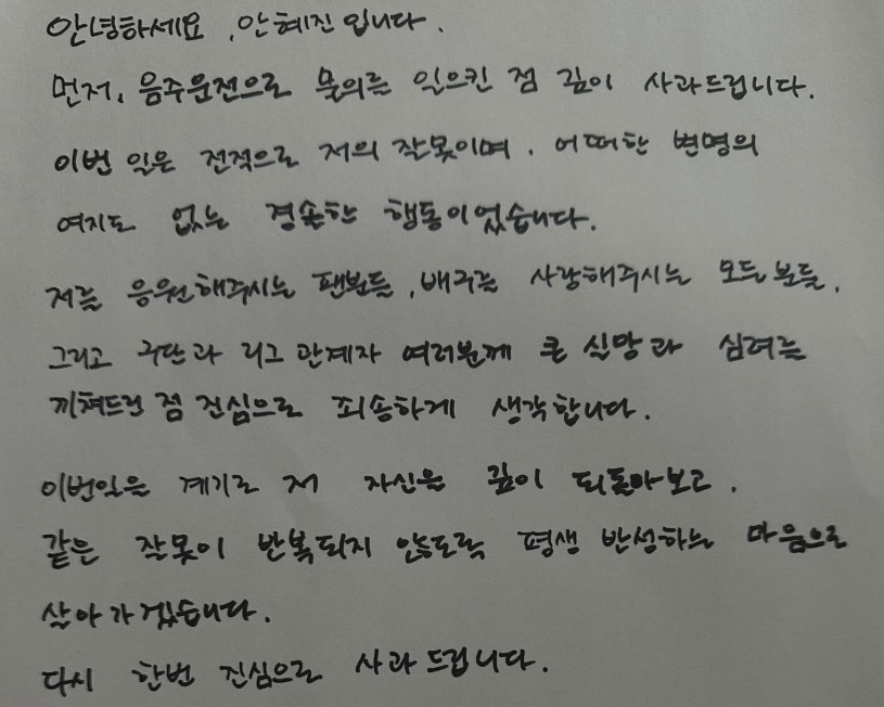 [오피셜] '음주운전' 안혜진, 다 잃었다…FA 대박 무산 위기→태극마크도 박탈 당해 "중징계 가능성도"