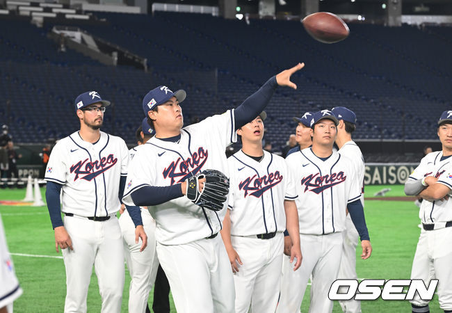 [사진]류현진,'럭비볼 한 번 던져볼까'