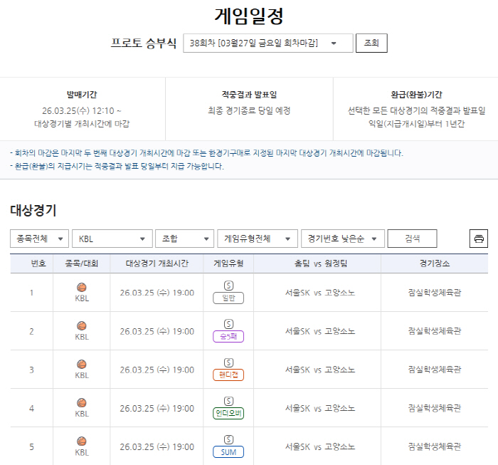 서울 SK vs 고양 소노…주중 KBL 빅매치 대상 프로토 승부식 38회차 마감 임박