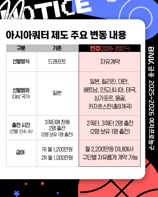 여자농구 아시아쿼터 문 활짝→'자유계약'으로 선발+국적도 확대…WKBL 이사회 개최