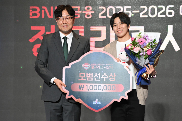 "감독님, 저 모범이래요!" 재치 넘쳤던 하나은행 진안, 모범선수상 수상 [WKBL 시상식]