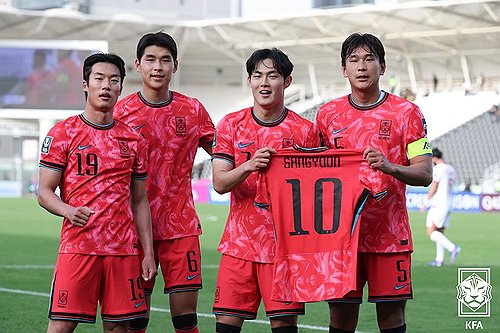 강상윤 유니폼 들고 세리머니를 펼치는 선수들