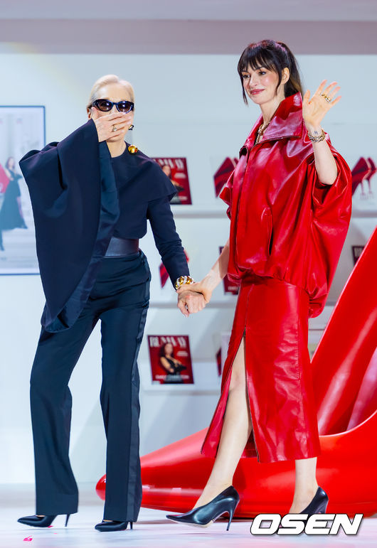 [사진]메릴 스트립-앤 해서웨이,'손 꼭 잡고 손키스 인사'