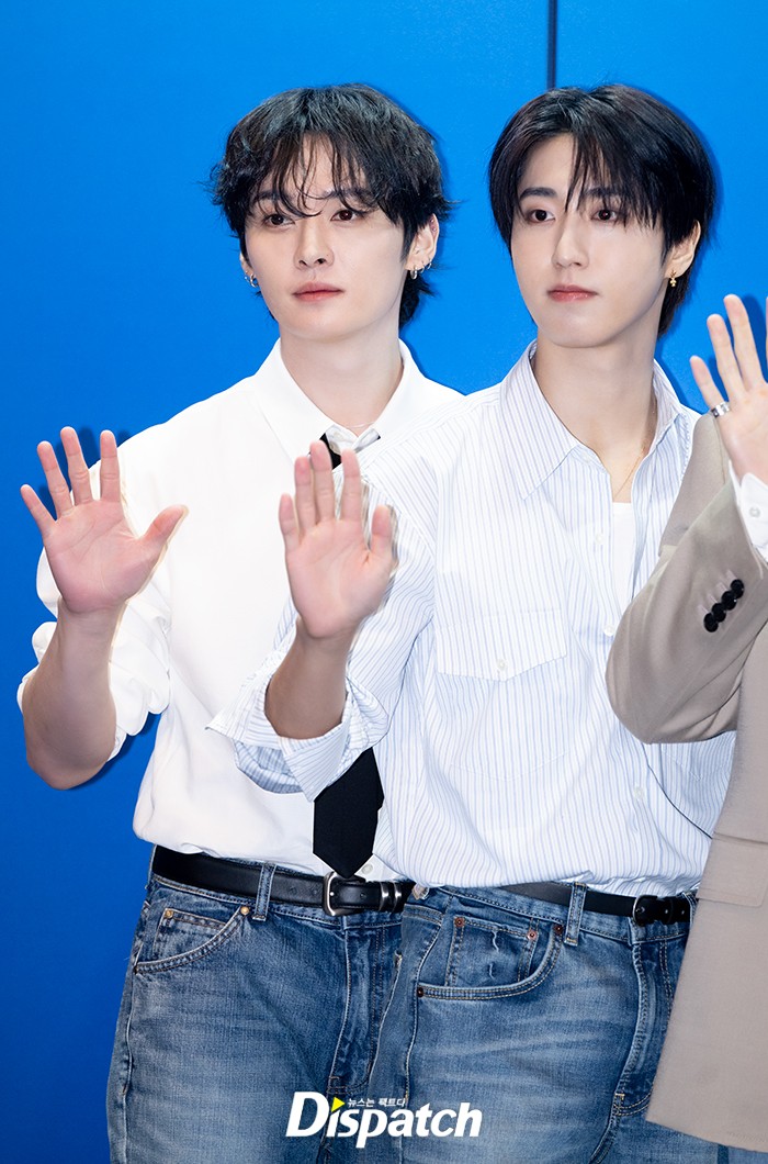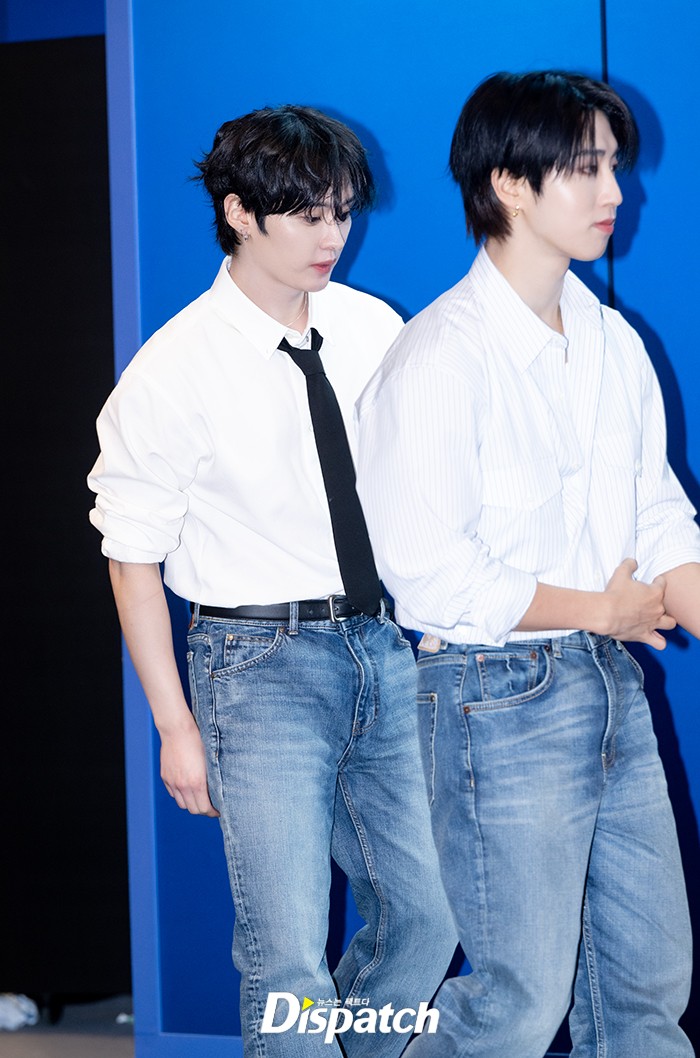 [현장포토] "셔츠에 청바지"…리노·한, 패션 데칼코마니