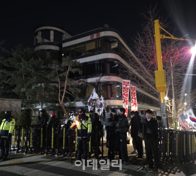 [포토] 법원 앞 지키는 윤석열 전 대통령 지지자
