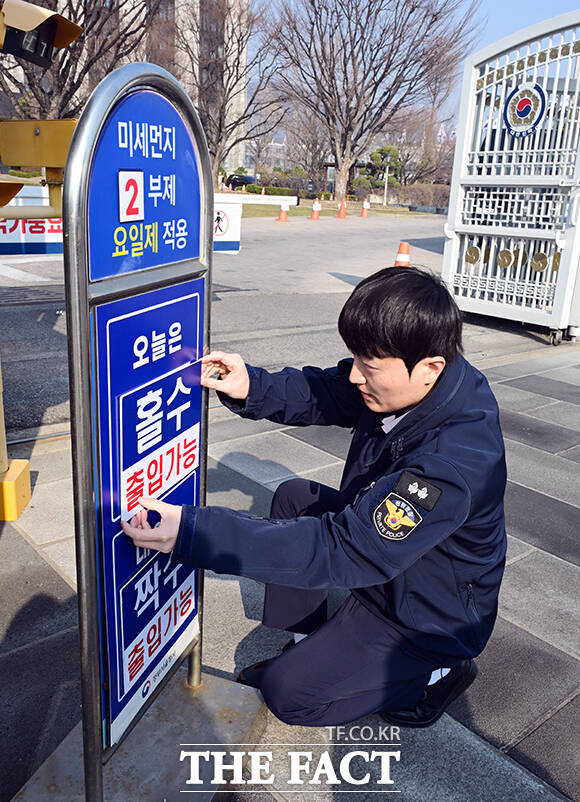 미세먼지 대응, 차량 2부제 시행하는 정부서울청사 [포토]