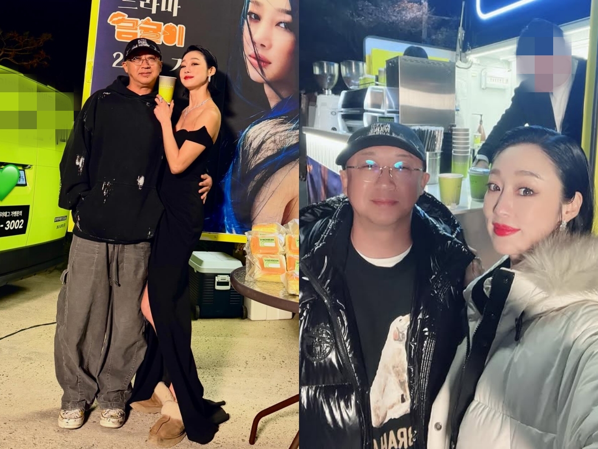 최여진, 아름다운 드레스 자태…남편 다정한 스킨십으로 '애정 과시' [★해시태그]