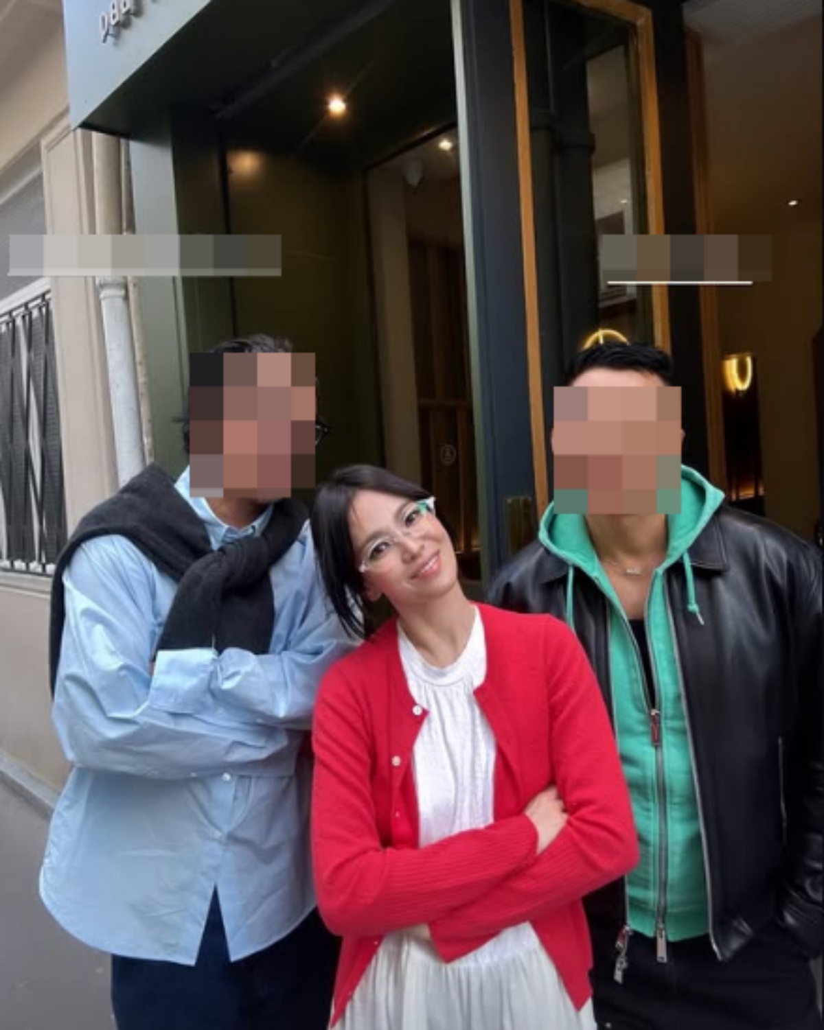 송혜교, 파리서 남사친들과 만났다…살 더 빠졌나? '뼈말라급' 턱선 [★해시태그]