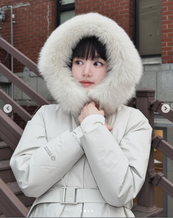“추우니까 안아주까?”…이유비, 하얀색 패딩 입고 ‘청량 플러팅’ [★SNS]