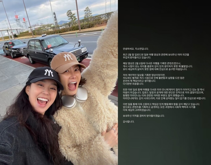“미라 언니는 업로드 일정 몰랐다”…지소연, 3·1절 직전 ‘日 여행’ 영상 사과 [★SNS]