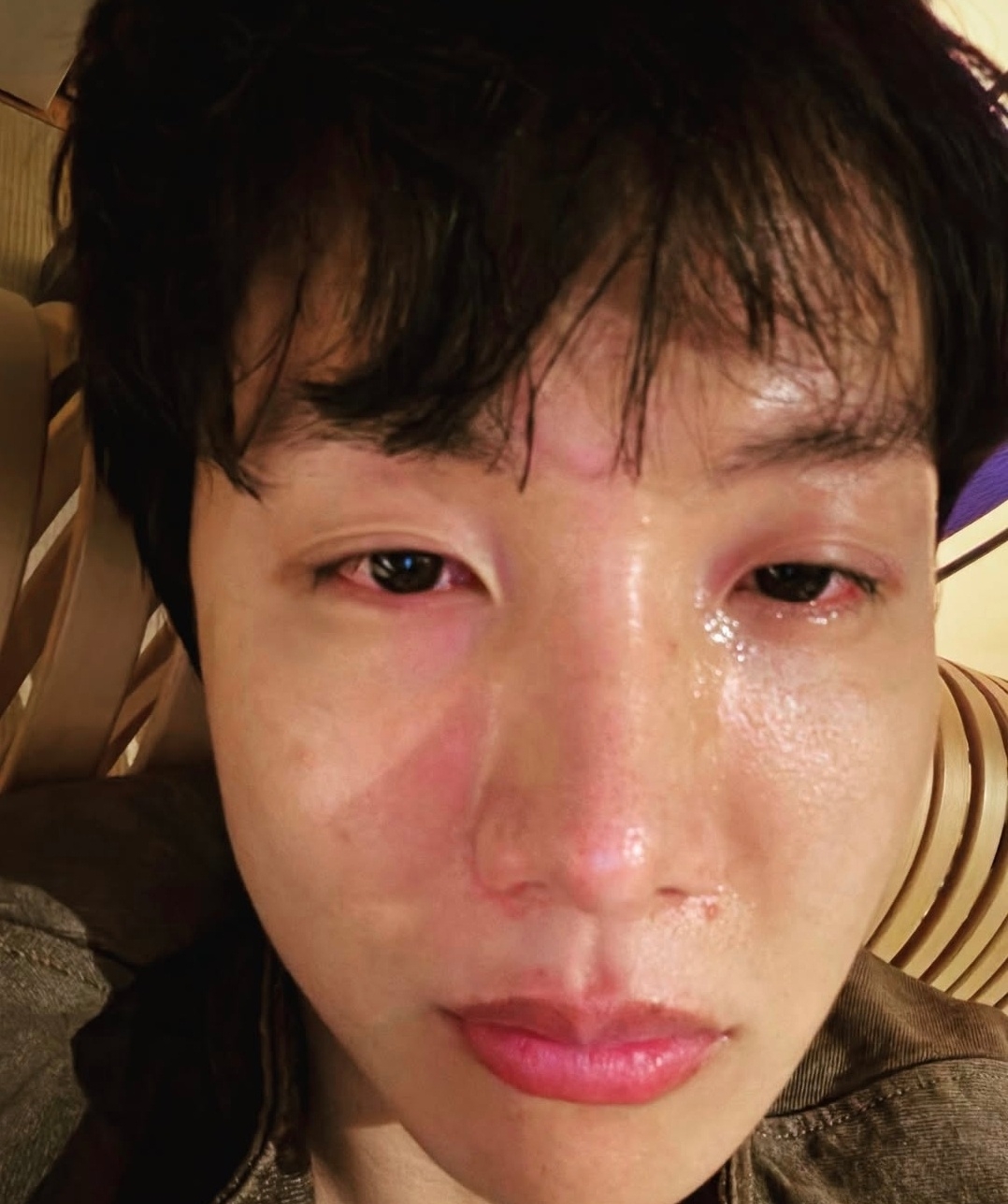 제이홉, 충혈된 눈물의 셀카 사진 공개…“정말 놀라고 당황스러워”