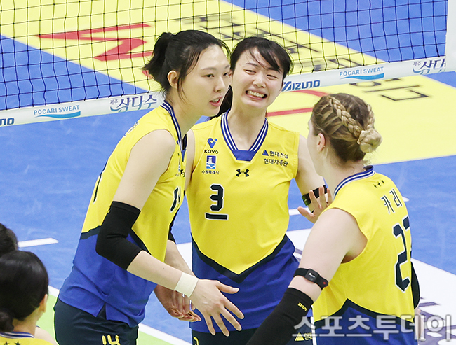 [ST포토] 양효진 득점 성공에 더 기뻐하는 김다인