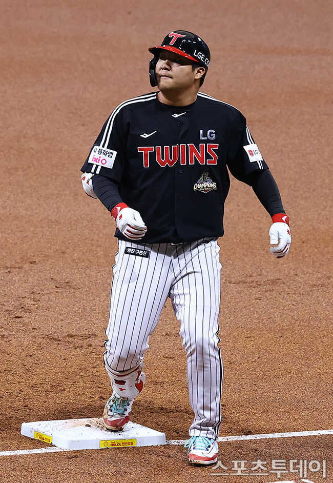 [ST포토] 첫 타석 적시타 뽑는 문보경
