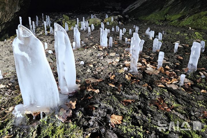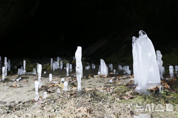 [뉴시스 앵글]한파에 고개 내민 제천 월악산 역고드름