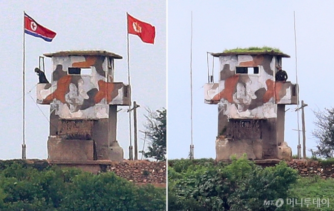 [사진]깃발 내려간 북한 초소
