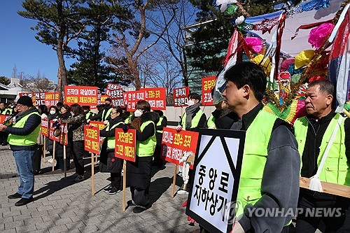 경찰과 대치하는 대전 중앙로지하상가 입찰피해비대위