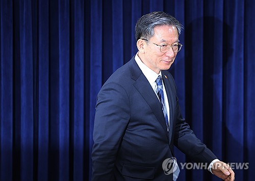 밝은 표정으로 브리핑룸 들어서는 정성호 장관