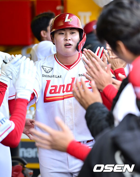 [사진]SSG 고명준, '시범경기 연타석 홈런포 하이파이브'