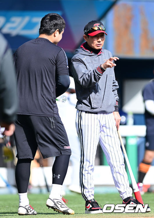 [사진]LG 염경엽 감독, '장현식 향해 조언 전하며'