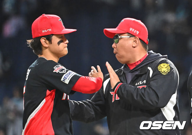 [사진] 김도영 홈런 축하하는 이범호 감독