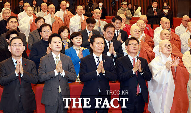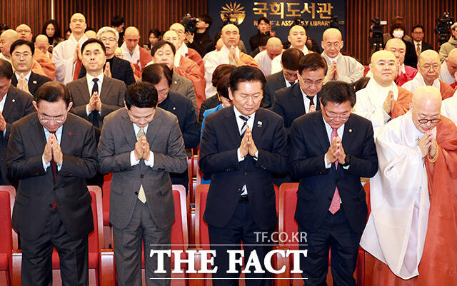 국회정각회 신춘법회 참석한 정청래-장동혁 '동상이몽' [TF사진관]
