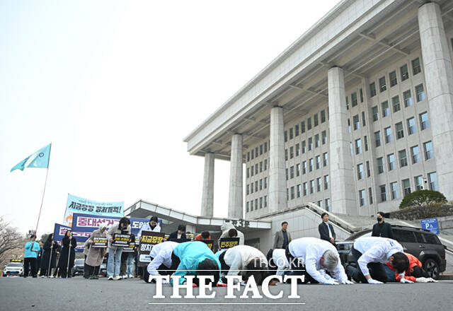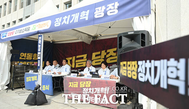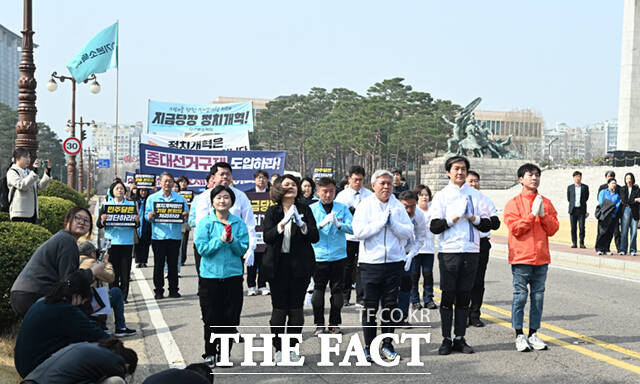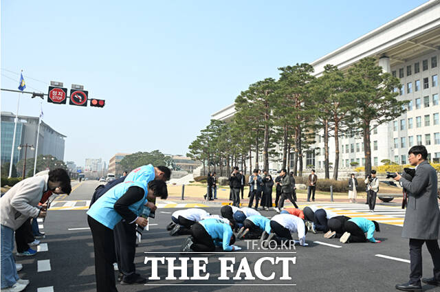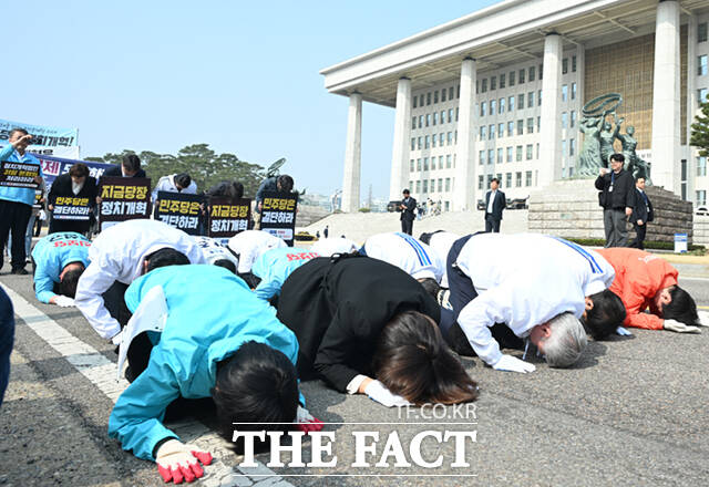 개혁진보4당, 정치개혁 촉구하며 국회 삼보일배 행진 [TF사진관]