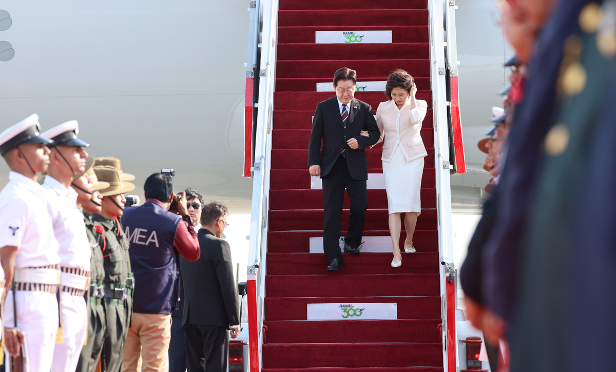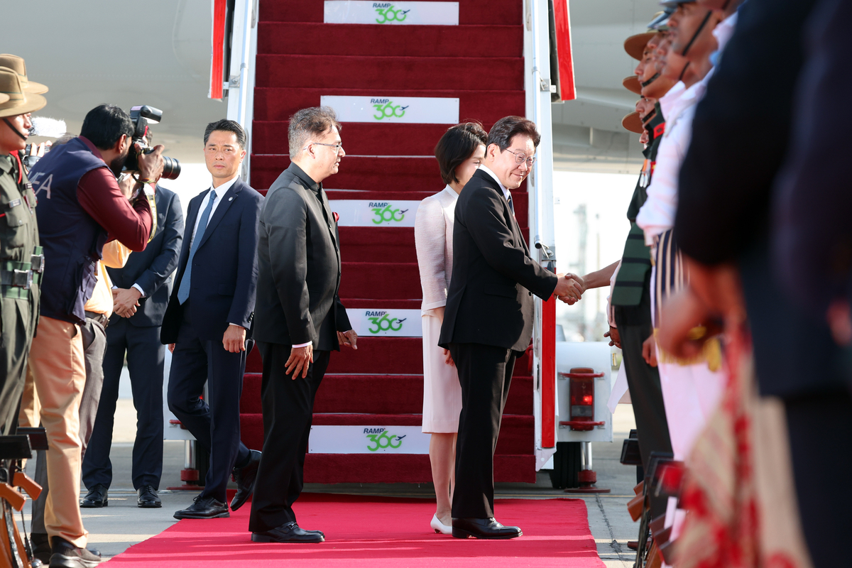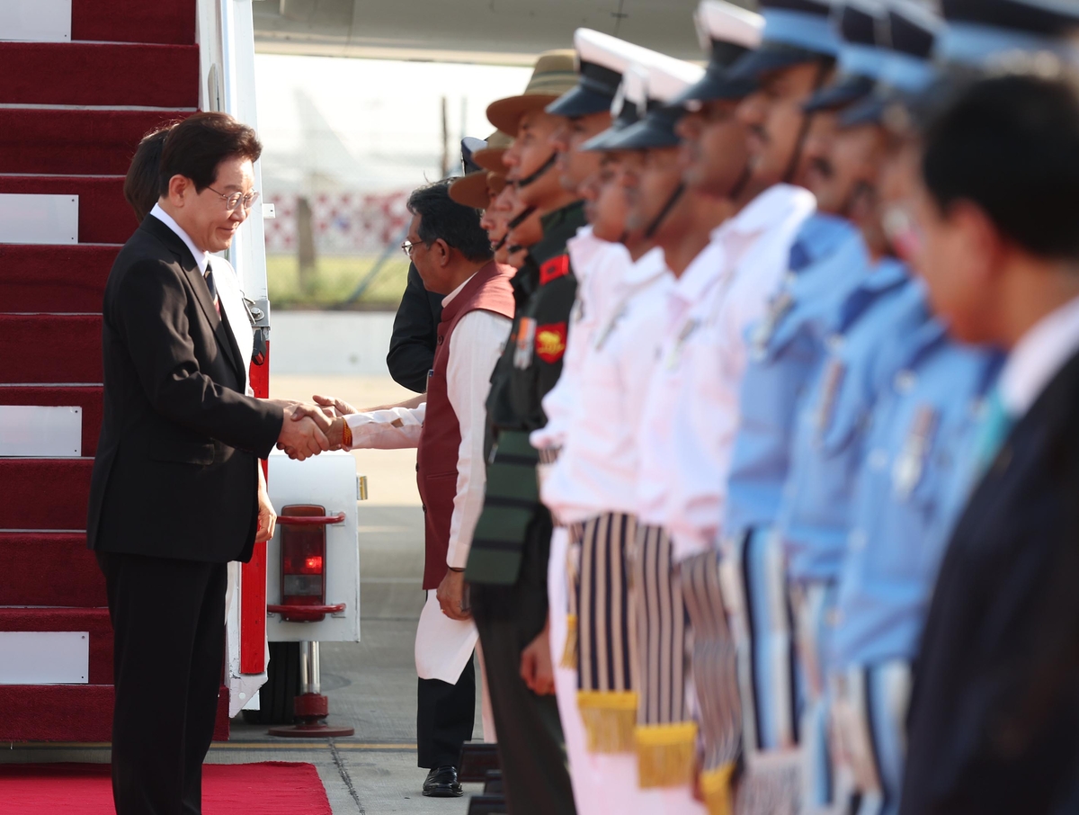 이 대통령, 인도 뉴델리 도착···재계 총수들 경제사절단 동행 [현장 화보]