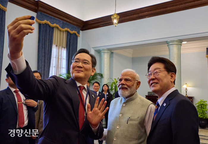 인도산 갤럭시로 ‘셀카’[포토뉴스]