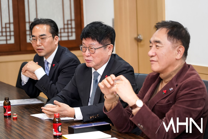 [mhn포토] 권인욱 회장, 방신실 회원 가입 축하 인사말 전달