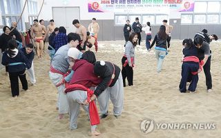 - 정읍서 씨름 체험하는 외국 청년들